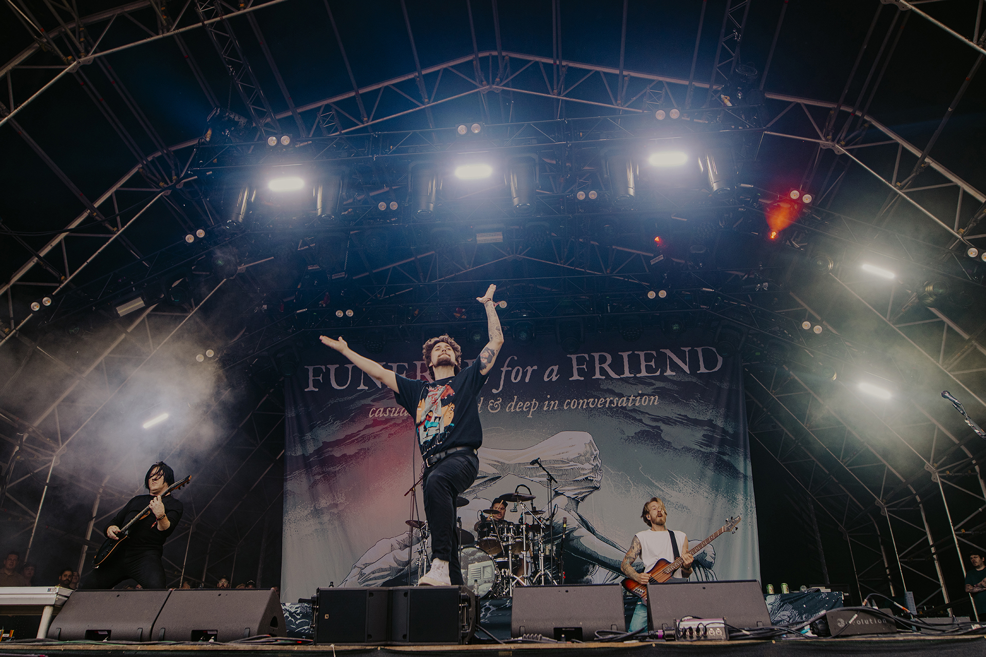 Both are absolutely true for Welsh 00s post-hardcore scene kings Funeral For A Friend, who headlined the show’s Opus stage on Friday. “It was great. We brought the fire, both literally and figuratively,” drummer and scream vocalist Ryan Richards tells Audio Media International, “It was a reunion of sorts for us, and it was quite special since we’ve played Download many times – including the first one in 2003.”